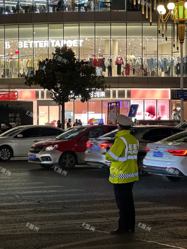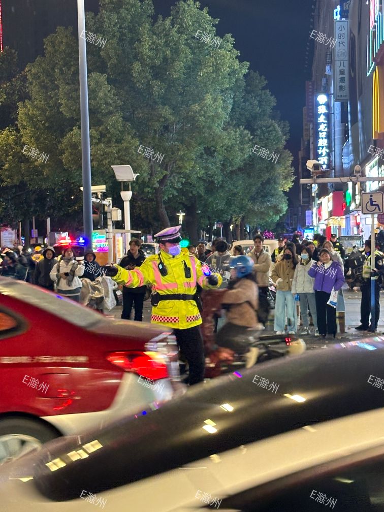 今晚跨年夜,滁州苏宁天长路这边好多人,路口都是执勤的交警!你们出来跨年吗?