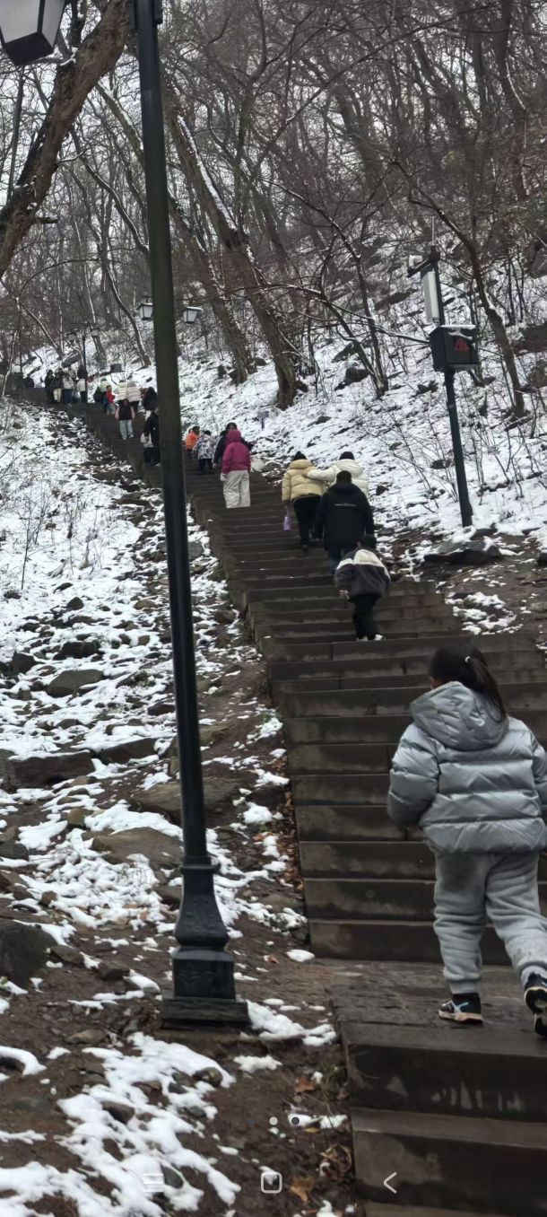 恰逢元旦佳期,游人纷至沓来,携伴登高踏雪,赏此冬日盛景。欢声笑语漫过石阶,暖意融融驱散寒意。
