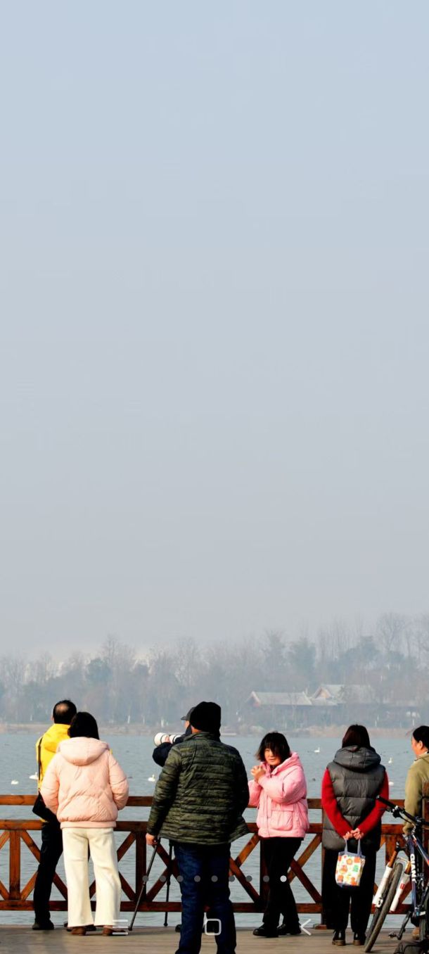 冬日的明湖,因这群小精灵的到来而焕发出别样生机。澄澈湖水与洁白羽翼相映成趣,灵动身影点缀着静谧湖面,勾勒出一幅独具韵味的生态画卷。这般美景也吸引了省内外的摄影爱好者纷至沓来,他们手持“长枪短炮”,或蹲或立,专注捕捉小天鹅的每一个灵动瞬间,湖畔人头攒动,热闹非凡,成为明湖冬日里一道独特的风景线。
