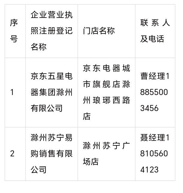 为确保活动顺利开展,根据省里统一安排,首批参加2026年滁州市家电以旧换新试运行门店如下。