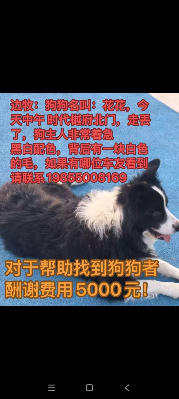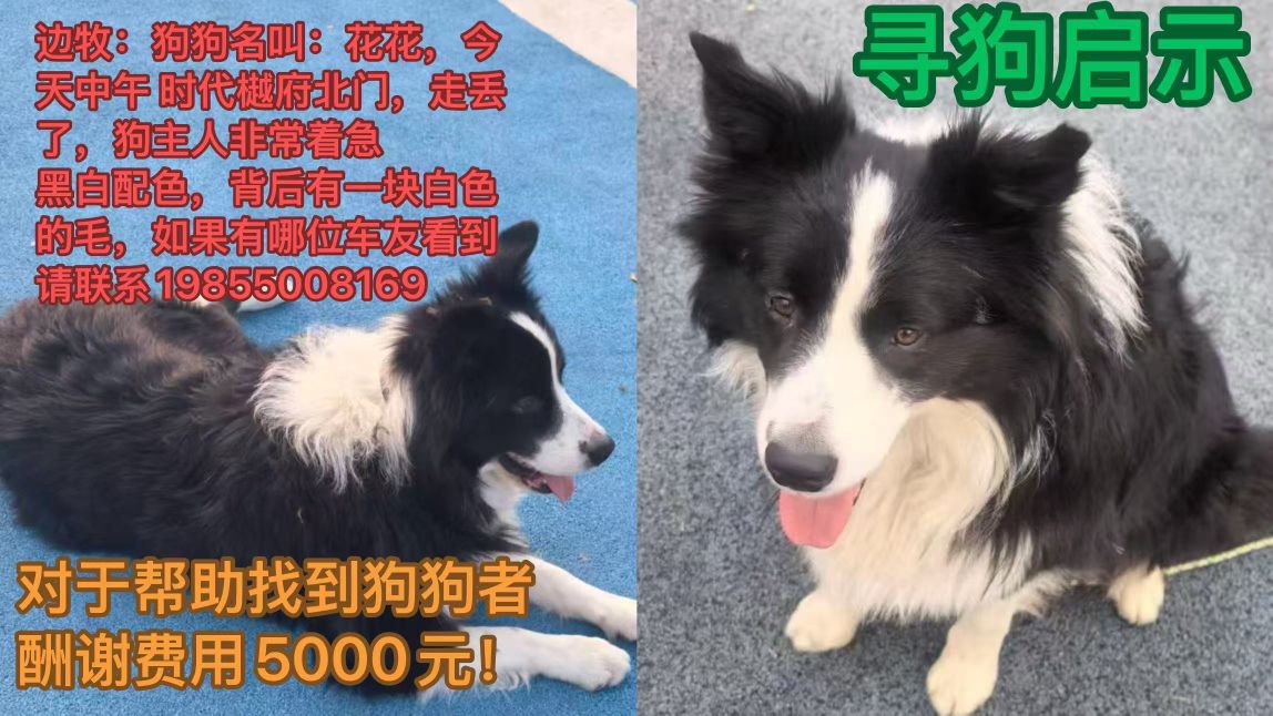 对于提供线索并帮助找到花花的好心人,主人承诺重金酬谢 5000 元!绝不食言!