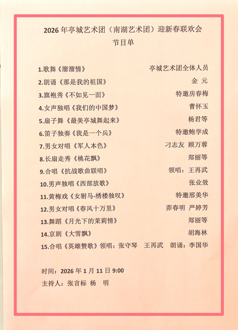 【美篇】亭城艺术团成功举办“2026迎新春联欢会”