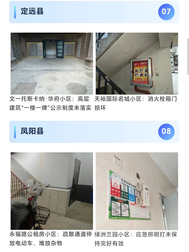近期,滁州市全面开展高层建筑重大火灾风险隐患排查整治专项行动,现将典型消防安全隐患集中曝光,警示相关单位限期整改,凝聚全民防火共识。