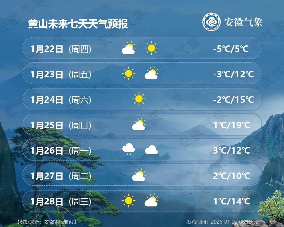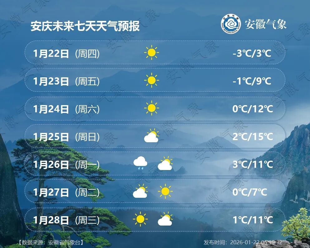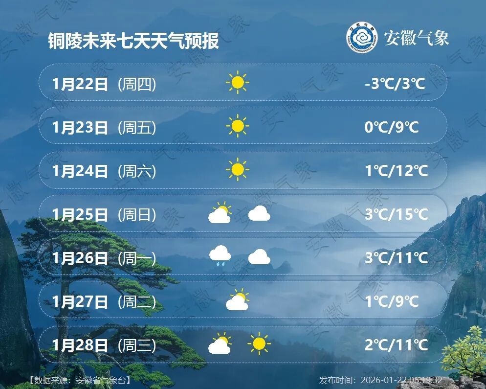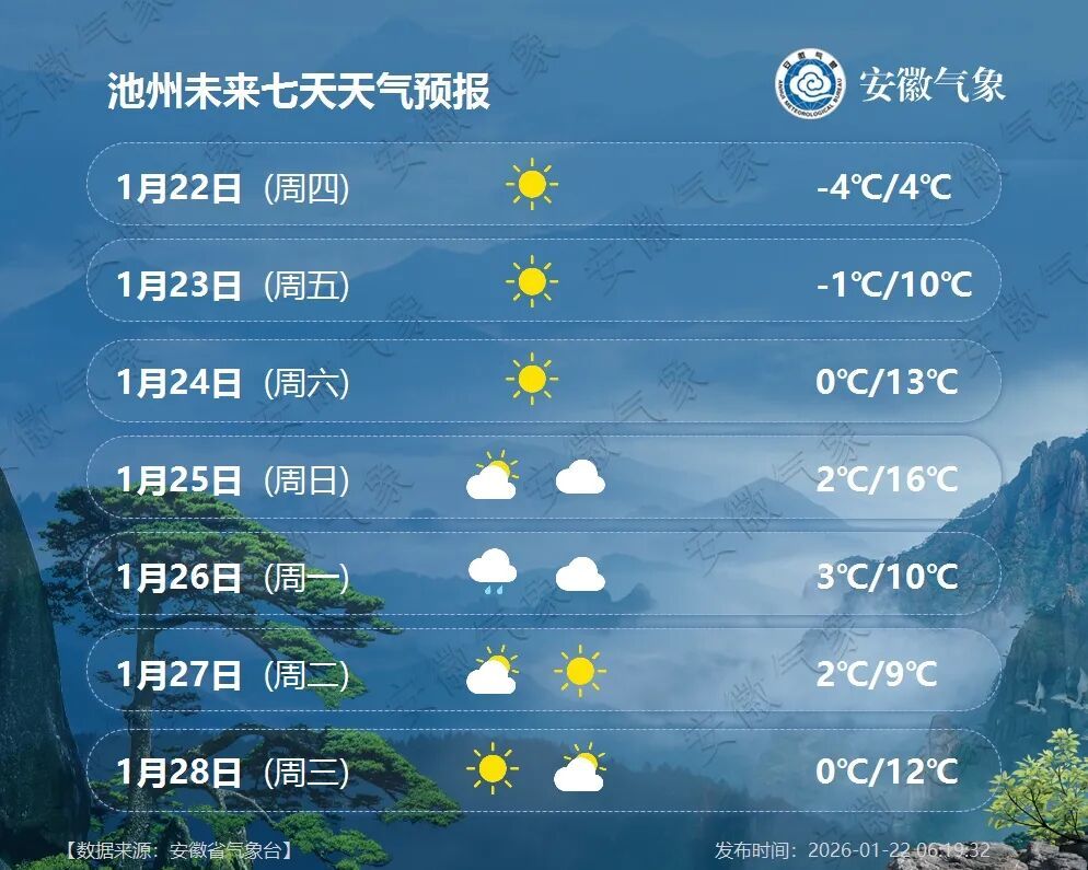 22日(周四):全省多云转晴天。