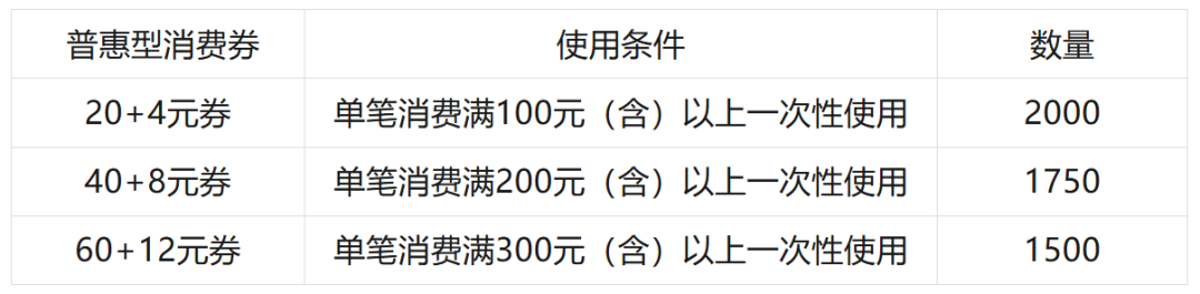 普惠型消费券在凤阳线下适用消费券政策的实体门店使用,主要发放商超、成品油、住宿、餐饮等领域普惠型消费券。每个发券周期每种券别仅能领取1张消费券(3选1),领取后7天有效(含领券当日),逾期失效。