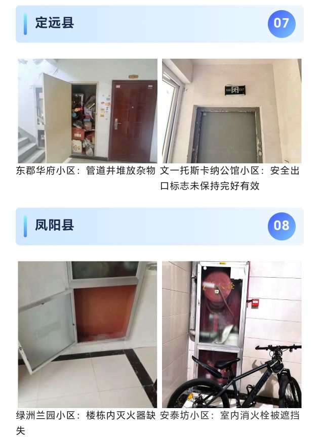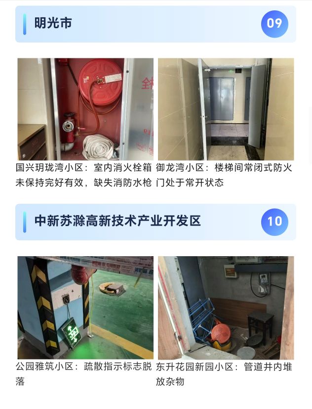 近期,滁州市全面开展高层建筑重大火灾风险隐患排查整治专项行动,现将典型消防安全隐患集中曝光,警示相关单位限期整改,凝聚全民防火共识。