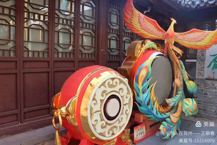 凤凰与鼓并立阶前,凤羽是橙与蓝的流光,鼓身是红与金的浓烈,鼓面似有余韵未散。身后窗格投下几何光影,像把传统拆解又重组,拼出新的节奏。我轻轻敲了下鼓沿,声音清越——原来老鼓,也能敲出新年的节拍。
