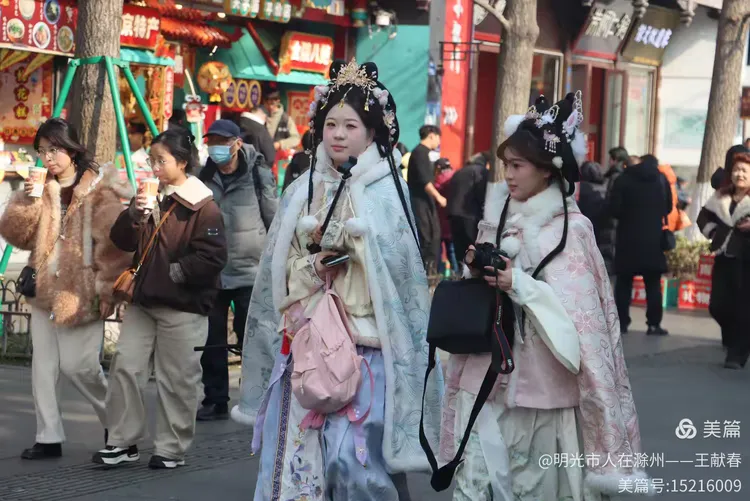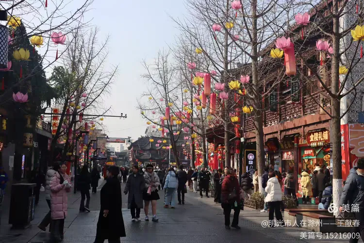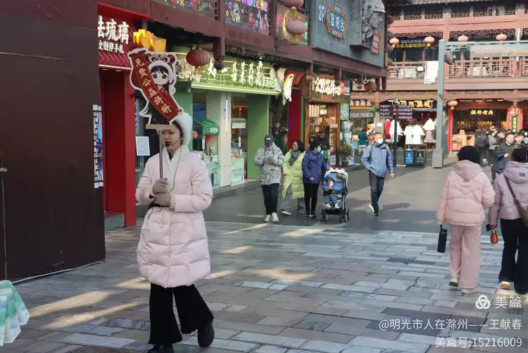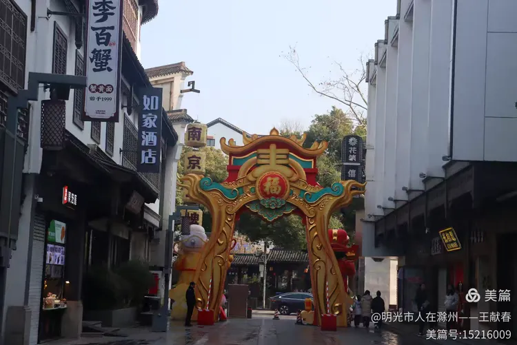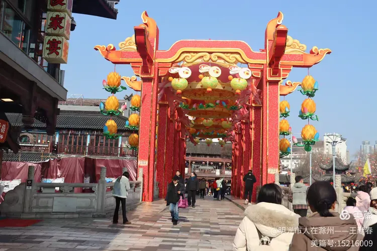 街道上方,一座装饰牌坊挂满黄绿灯笼,活泼得像刚剪好的窗花。左首“家宴”招牌暖光浮动,行人裹着羽绒服驻足拍照,有人把围巾裹得更紧些,却把笑容露得更开些。这年节的热闹,从来不是人声鼎沸,而是冷风里呵出的白气,都带着暖意。