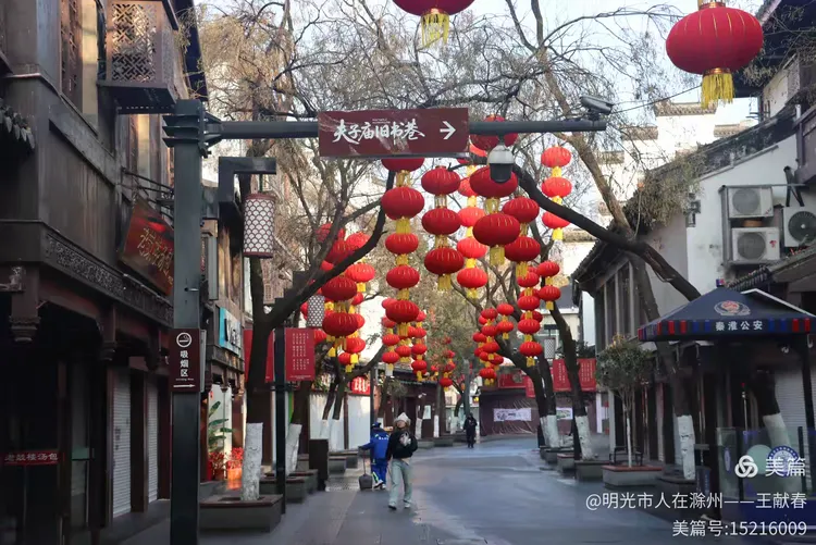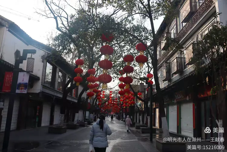 转入老街,青石路被灯笼照得泛柔光,飞檐翘角在夜色里勾出墨色剪影。几位行人裹着厚衣慢步,像被时光轻轻推着走。枝头叶已落尽,可那一串串红灯笼,却把冬的萧瑟,一盏一盏,暖成了人间烟火。