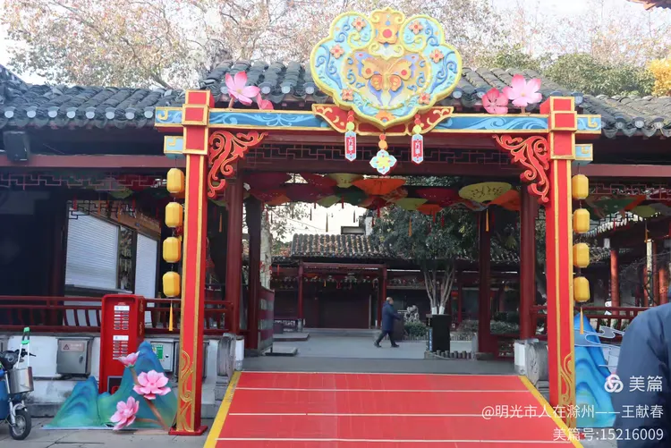 一座彩绘牌坊静静伫立,顶上花卉繁复,檐下黄灯温润。红毯铺展向前,两旁莲饰含蓄,像一句未说尽的祝福。我踏上去的那一刻,忽然明白:所谓节庆,并非喧闹堆砌,而是以美为引,让心慢下来,接住这一瞬的郑重与温柔。