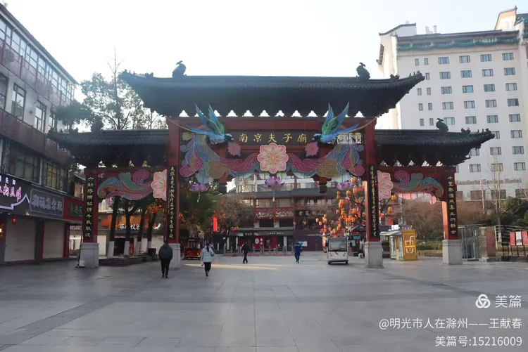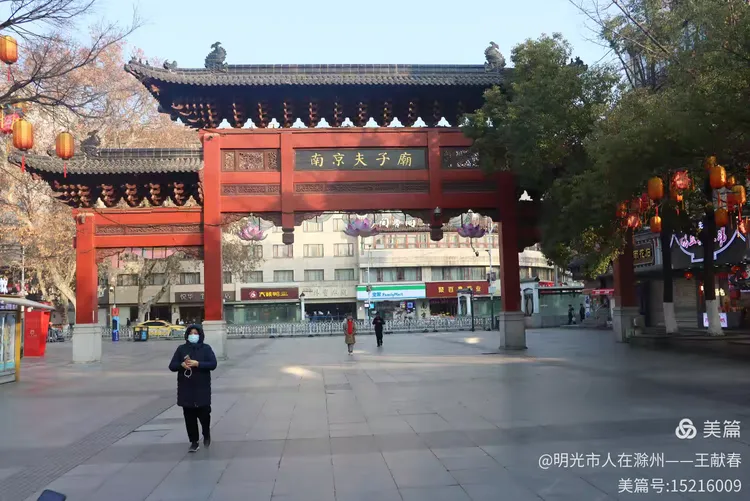 “南京夫子庙”五个大字端立牌坊正中,墨色沉稳,朱底灼灼。我站在广场中央,口罩遮不住笑意,深色外套裹着冬日微寒,却挡不住满眼暖光:灯笼在风里轻晃,现代商铺的玻璃幕墙映着古匾的影子,传统与当下,就在这方寸之间,彼此致意,不争不抢。