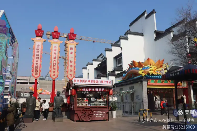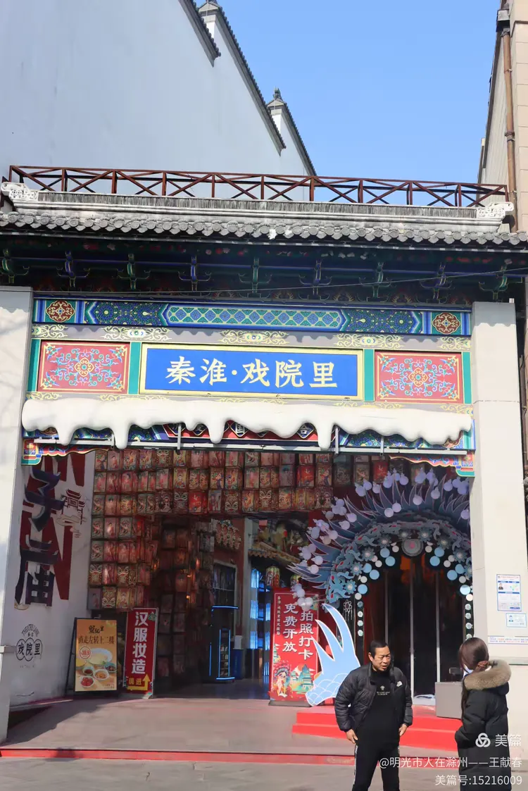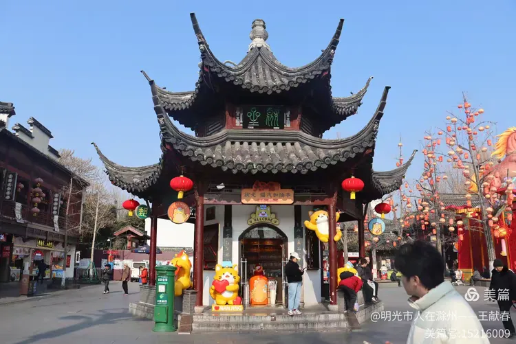 一进夫子庙景区,那座彩绘牌坊便撞进眼帘——蓝鸟栖于飞檐,朱漆映着斜阳,灯笼垂落如未落笔的红句。我仰头时,风刚好拂过檐角铜铃,叮当一声,仿佛把六百年的秦淮水声,轻轻摇醒了。