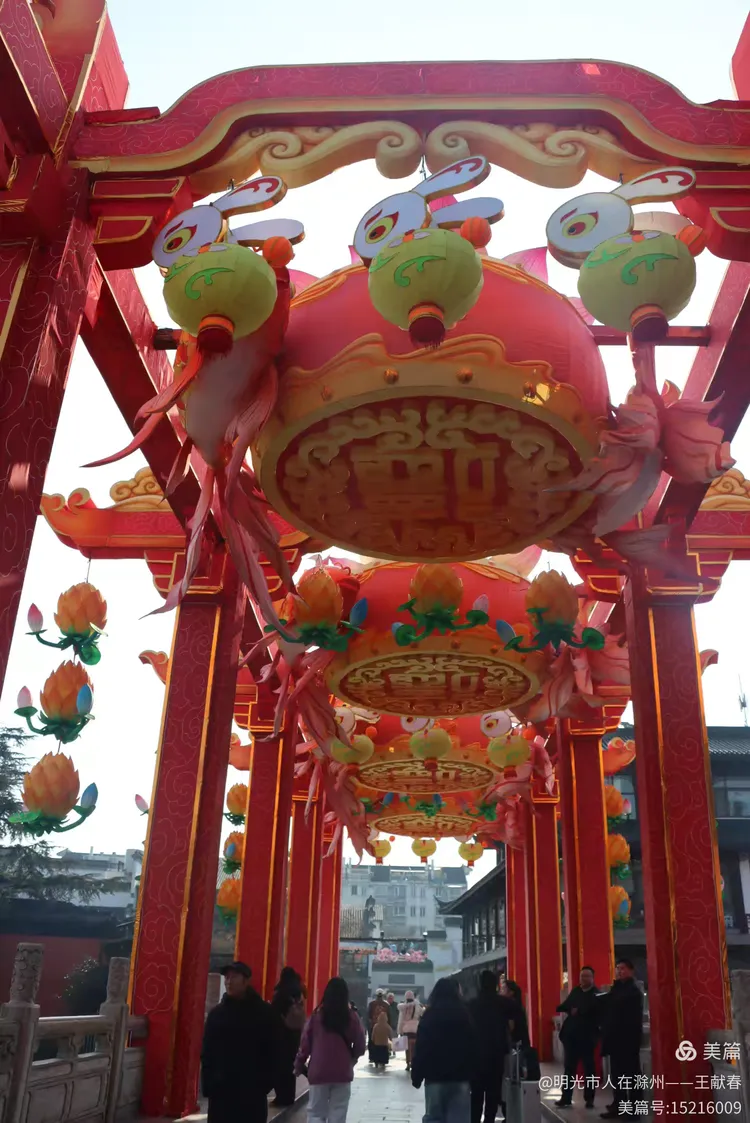 一座红牌坊巍然矗立,灯笼上兔子憨态可掬,金顶在夜色里泛着温润光。我仰头细看那雕花,指尖几乎要触到飞檐的弧度——忽然明白,所谓传承,不是把古物供在玻璃柜里,而是让它继续悬在我们头顶,亮在我们归家的路上。