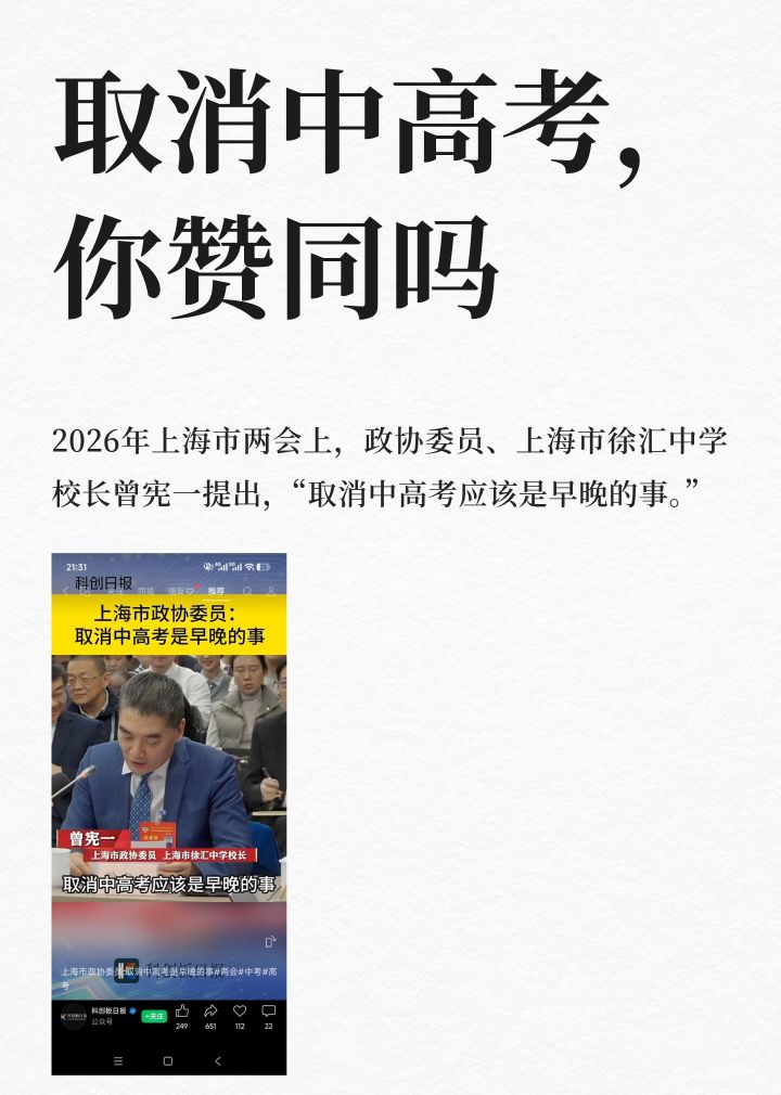 最近关于未来取消中高考的话题很火,你觉得中国会取消中高考吗?你赞同吗?