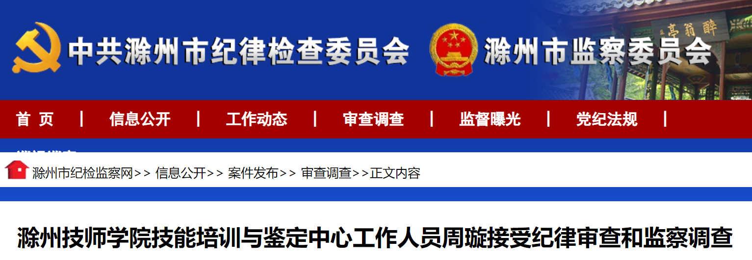 滁州技师学院技能培训与鉴定中心工作人员周璇涉嫌严重违纪违法,经滁州市纪委监委指定管辖,目前正接受滁州市琅琊区纪委监委纪律审查和监察调查。(滁州市纪委监委)