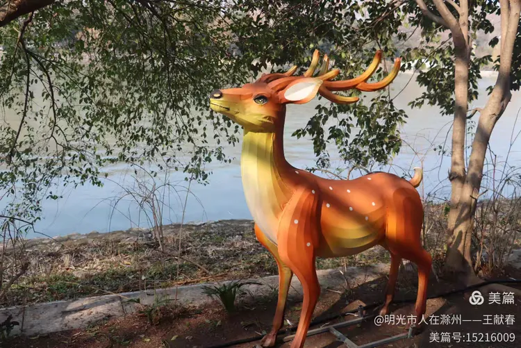 最喜庆的当属那对金色大象雕塑,稳稳立在红色底座上,长鼻卷着“吉祥如意”卷轴,耳畔垂着小灯笼。游人围着拍照,有孩子踮脚摸象鼻,有老人笑着比“耶”,大象不言,却把福气稳稳驮在了南湖的春水之上。