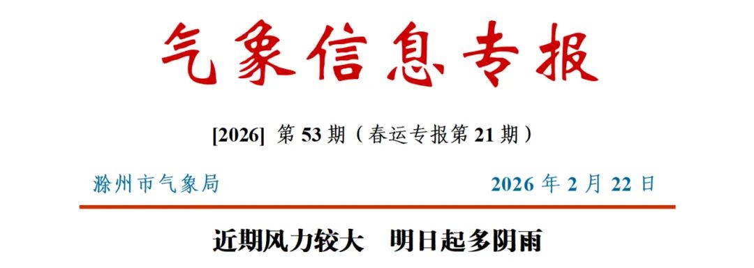 气温和大风预报:2月22-24日(初六至初八)有较强冷空气自北向南影响安徽,过程平均气温降幅7~10℃;同时全省平均风力3~4级,阵风7级。冷空气过后,25日(初九)早晨最低气温:江北地区2~4℃,其他地区4~7℃。26-27日(初十至正月十一)、3月1-2日(正月十三至正月十四)全省还有两次弱冷空气活动。