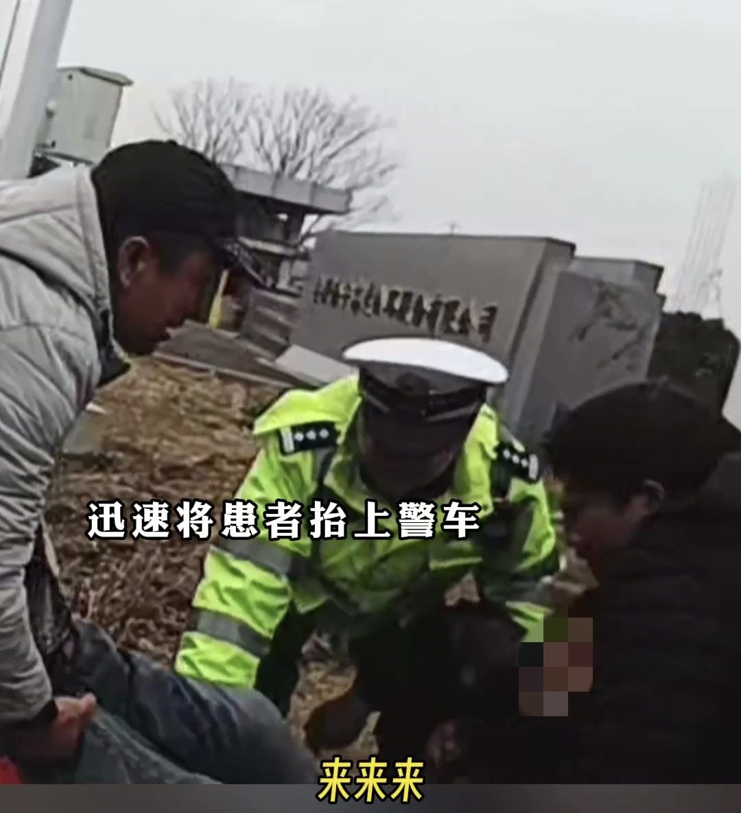 迅速将患者抬上警车
