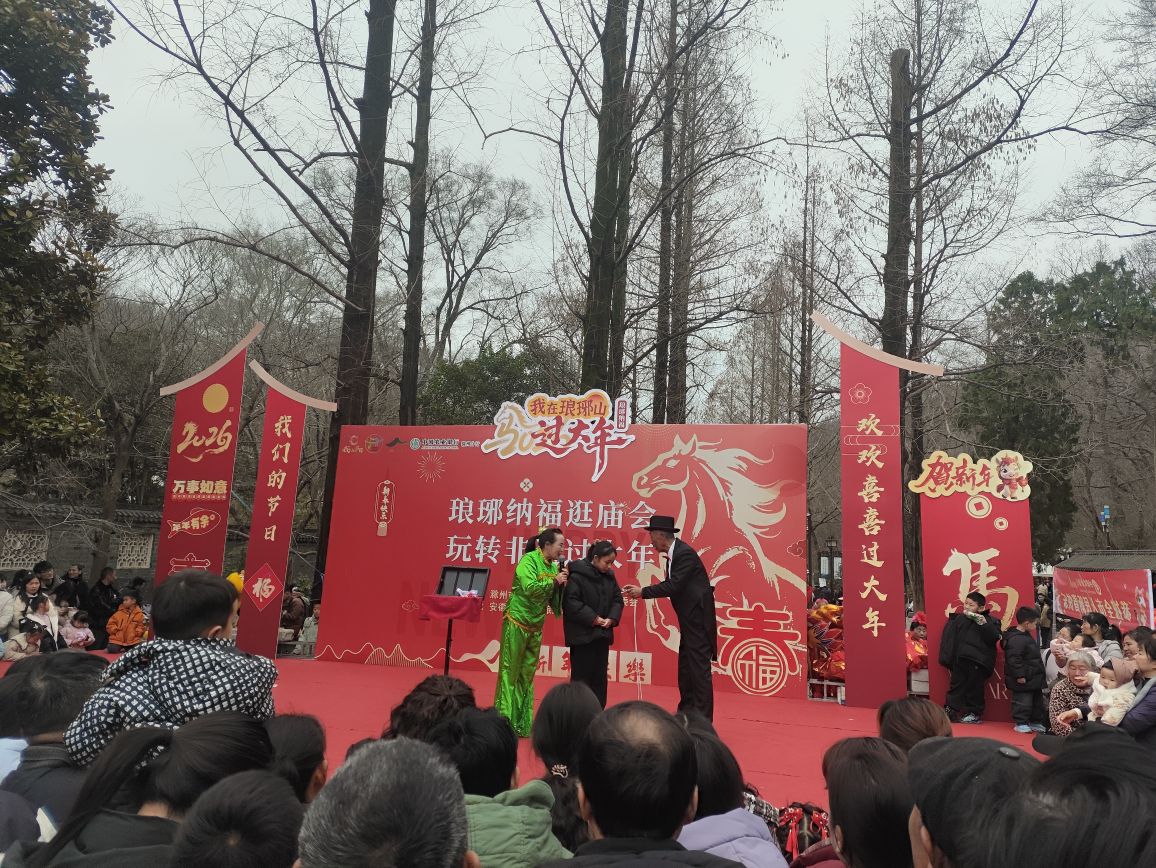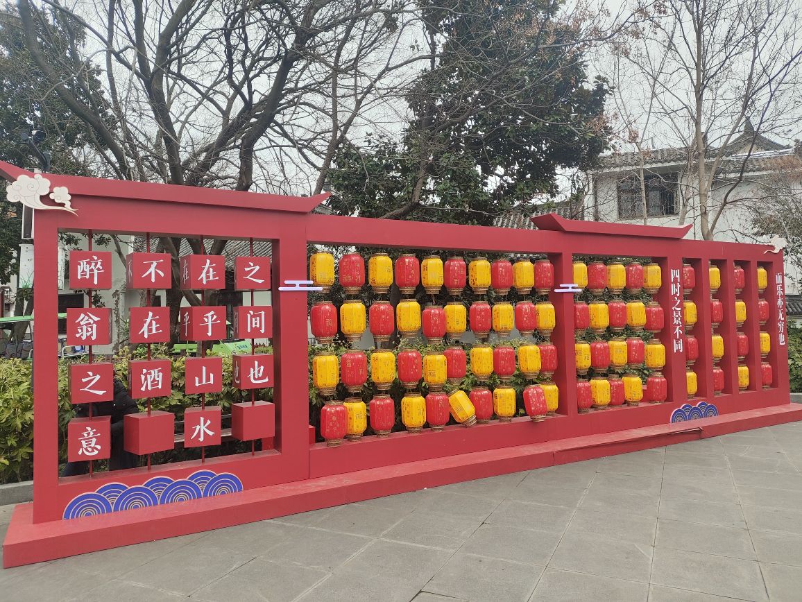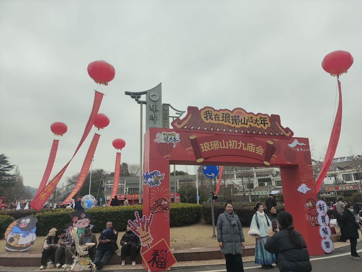 今年我们琅琊山的庙会确实有很多创新,不光延续往年的路边各类摆摊,还将入场券改成了一票游玩所有景点,同时还有好多民俗表演,机器狗,古风COS,还有一些细心的装饰,比如通往同乐园地上的九宫格,处处可见的吉祥设施。期待下次的庙会