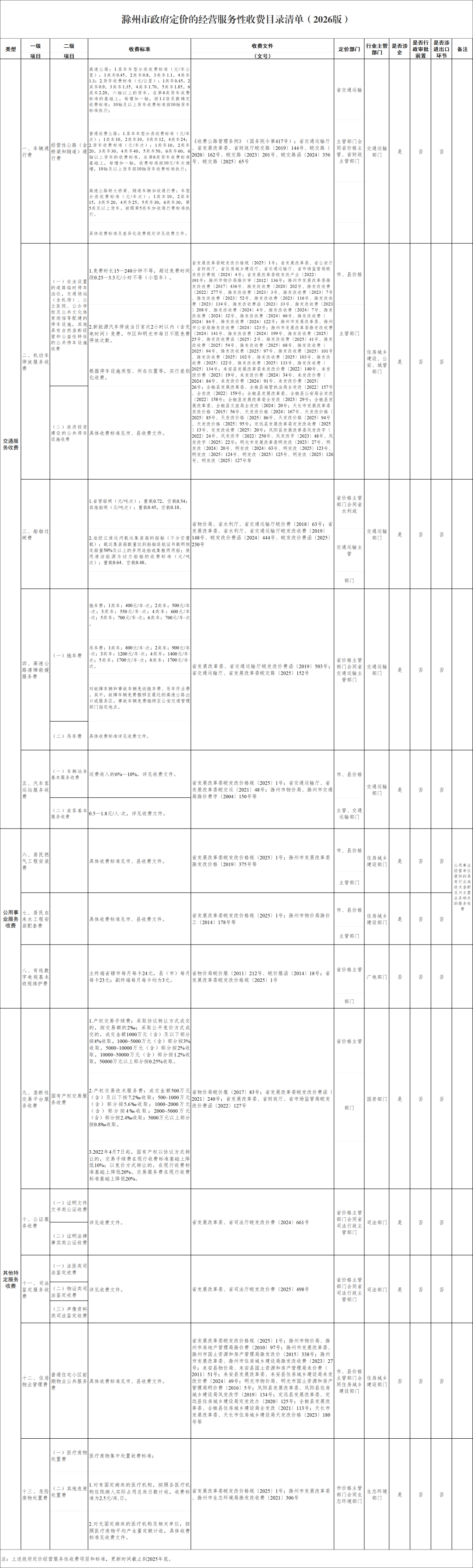 滁州市政府定价的经营服务性收费目录清单(2026版)