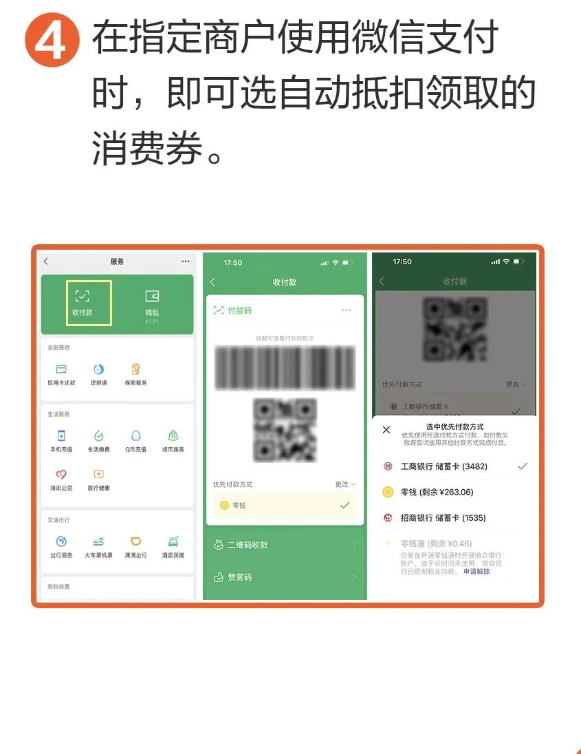 线上抢券,通过工商银行“e生活PLUS”微信小程序直接点击进入消费券领取页面,根据公布的发券时间节点进入活动界面领取消费券。