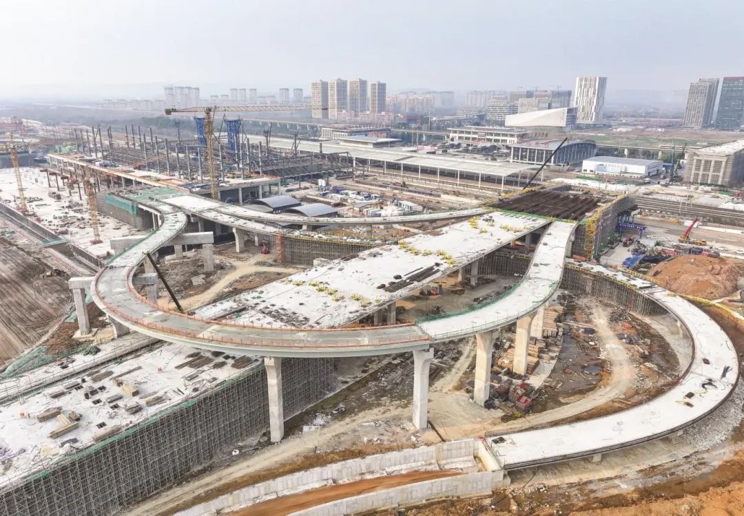 航拍北沿江高铁滁州站站城一体融合发展项目建设现场。