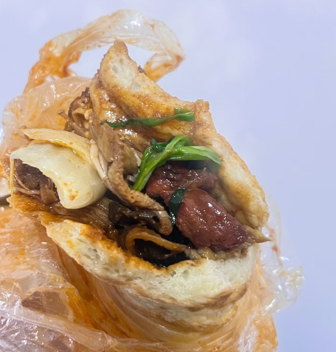 蚝油饼子吃了,感觉就我个人口感来说,偏甜。因为我从来没吃过蚝串卷饼,撑死吃个羊肉卷饼,对豆干子夹在饼中啃的口感相当不理解。