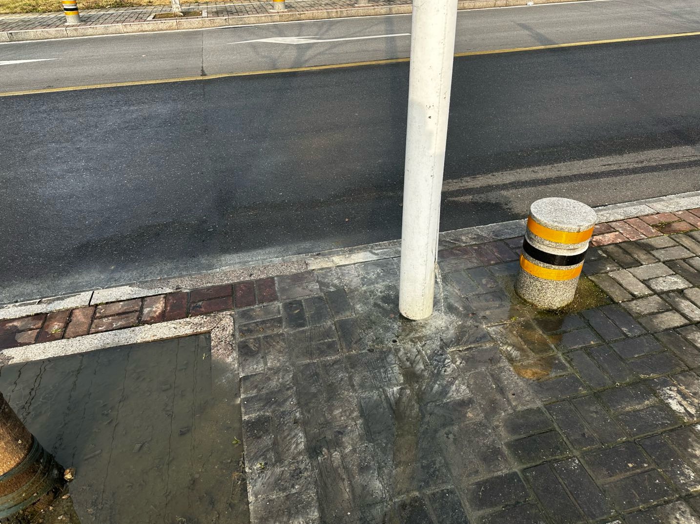 城南永福路与醉翁路交界处的一座路灯冒水好多天了,