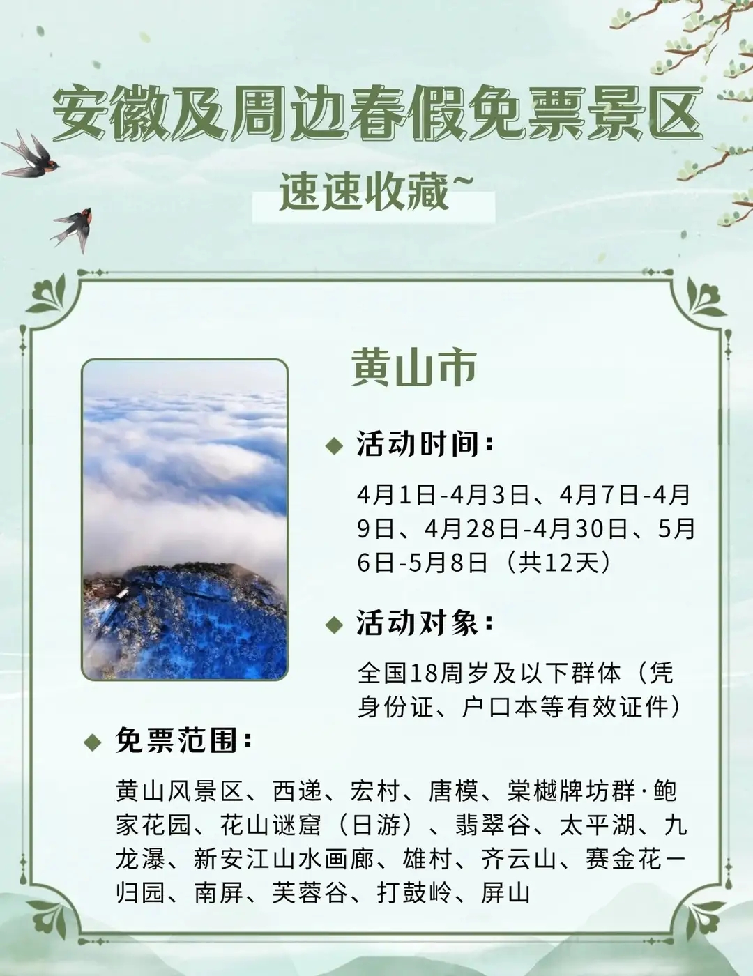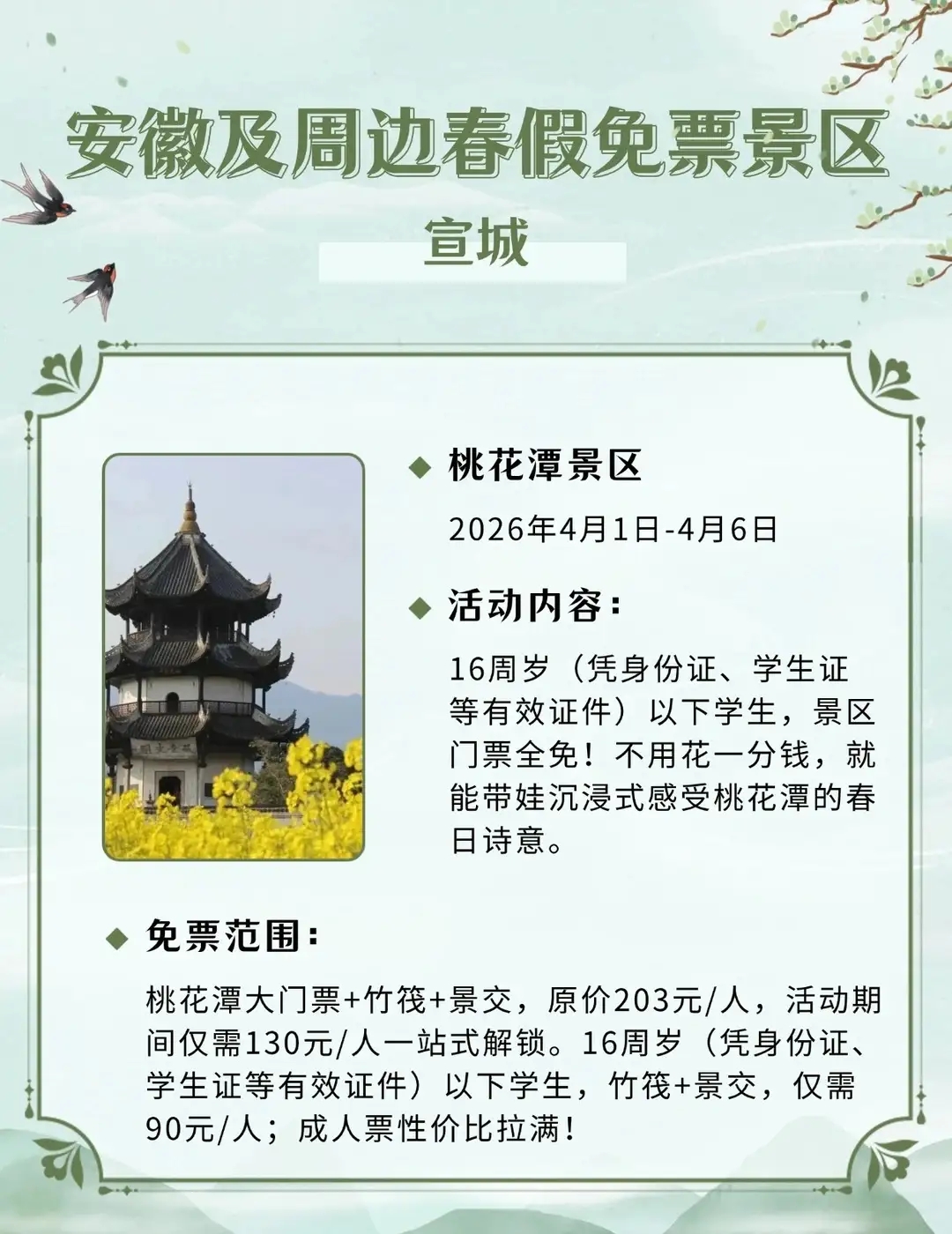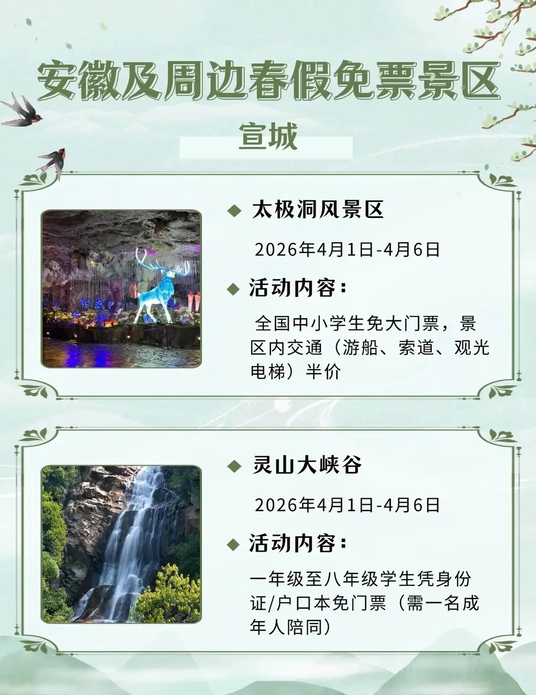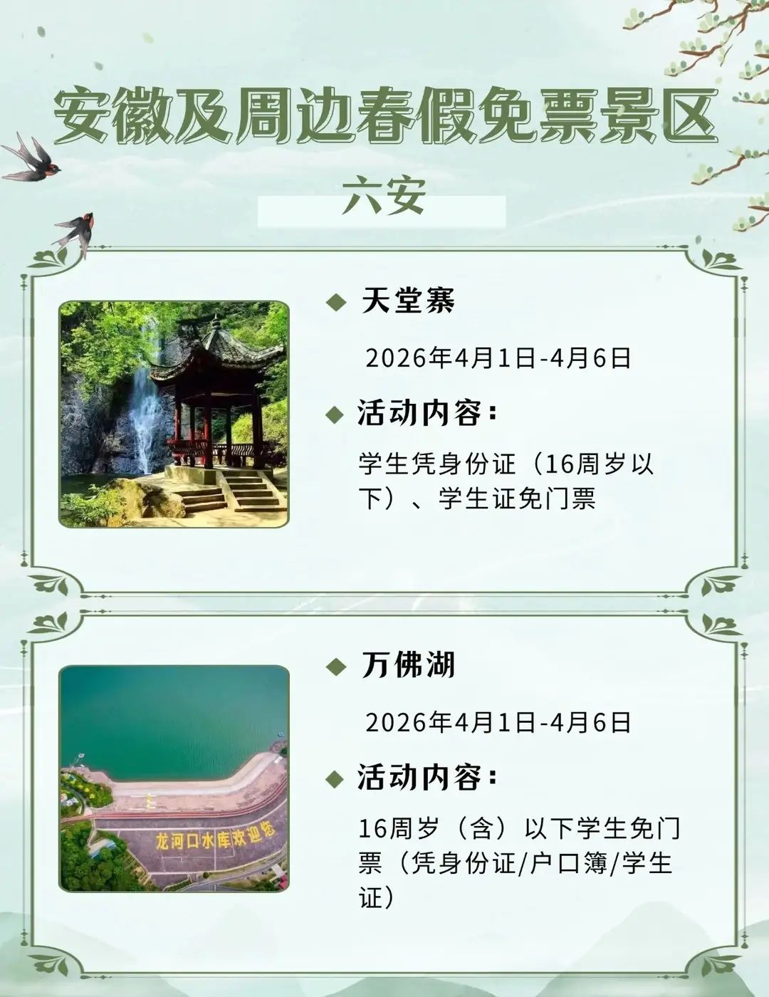 安徽及周边这些景区春假对娃免票,速速收藏2026年安徽首个“春秋假”来啦!4月1日-3日春假+4月4日-6日清明,连休6天!你会带娃出游吗?你单位放几天假?