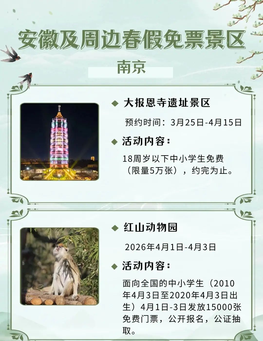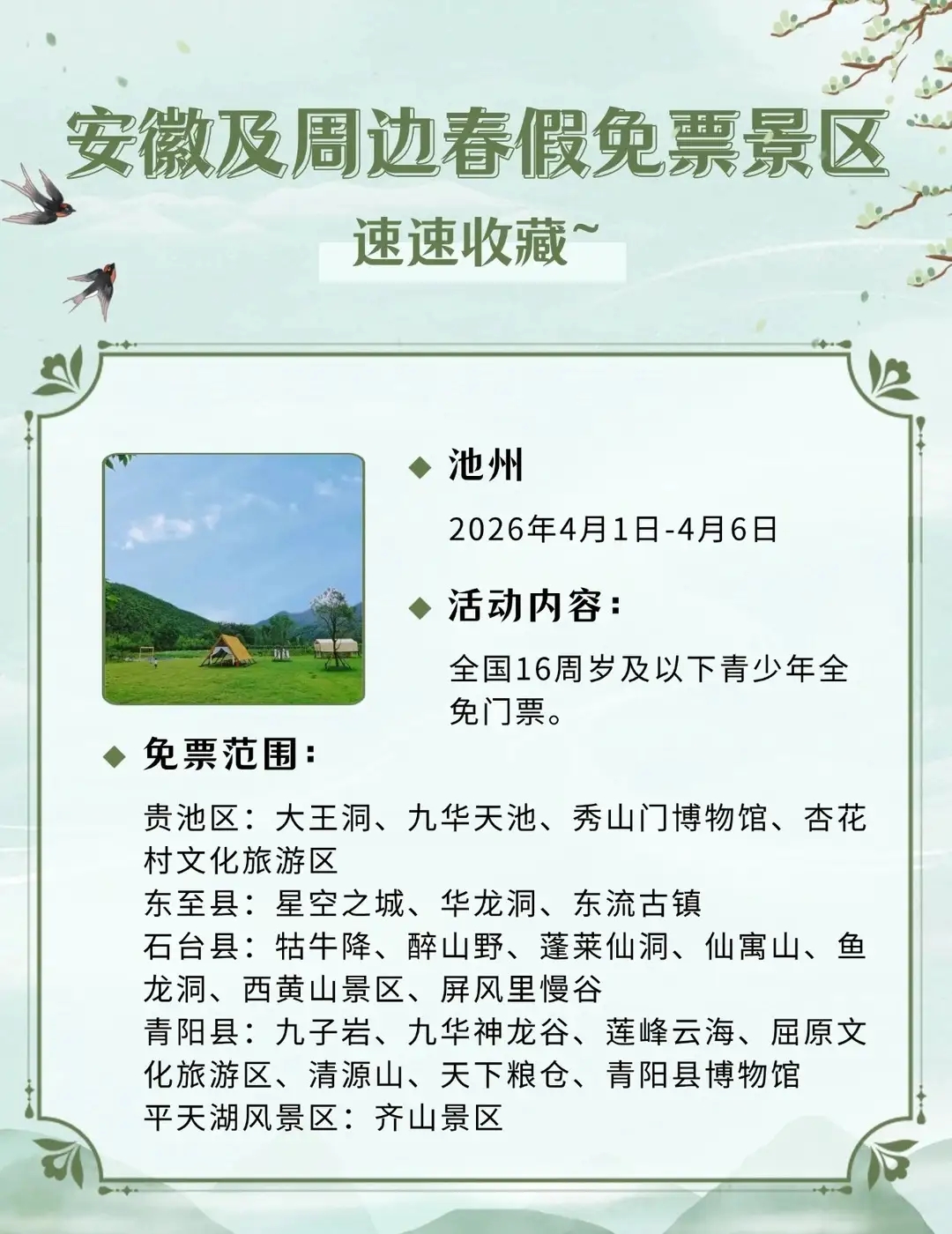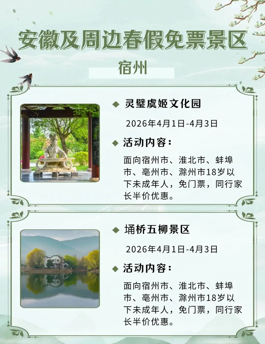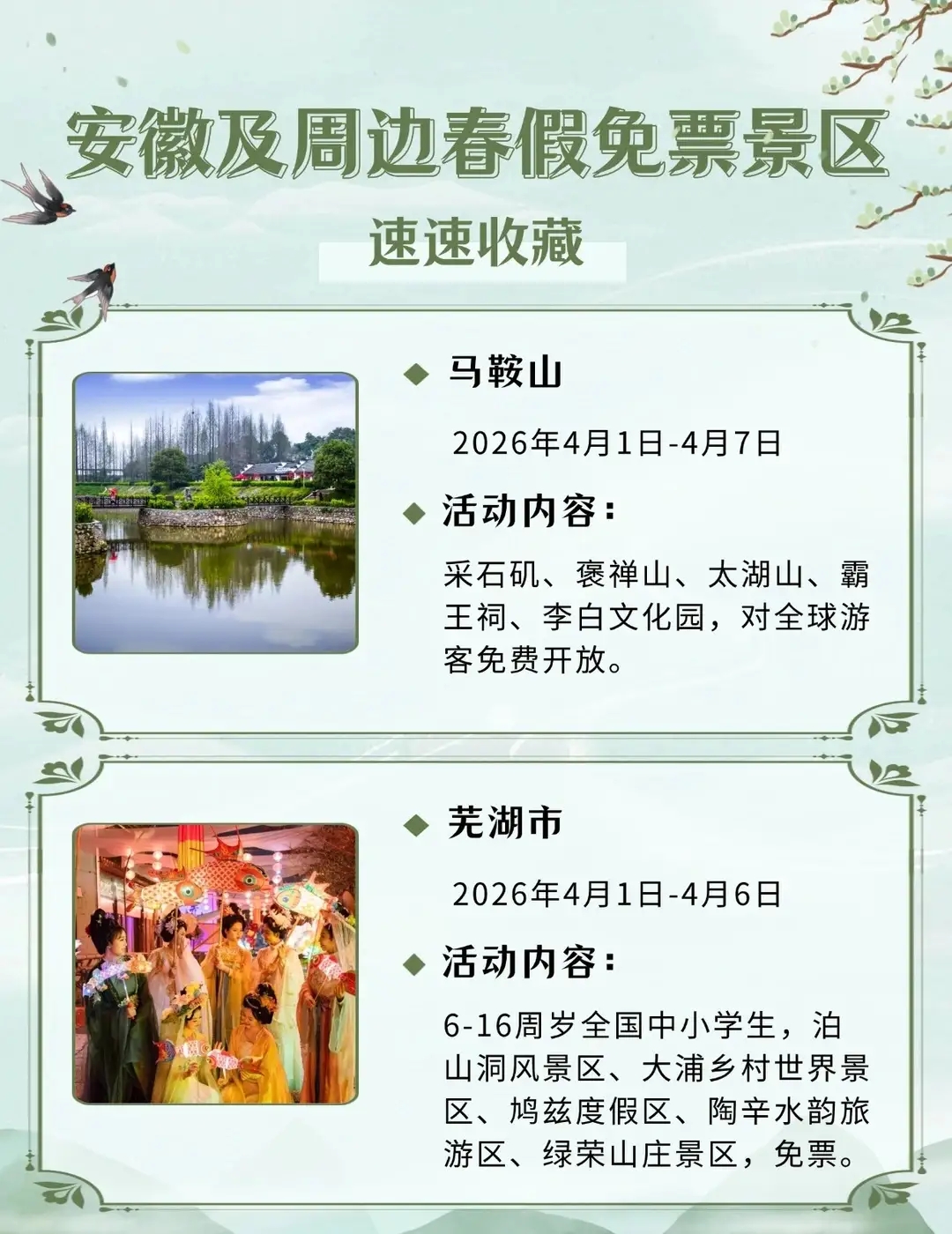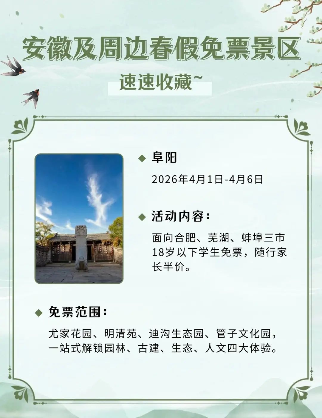 安徽及周边这些景区春假对娃免票,速速收藏2026年安徽首个“春秋假”来啦!4月1日-3日春假+4月4日-6日清明,连休6天!你会带娃出游吗?你单位放几天假?