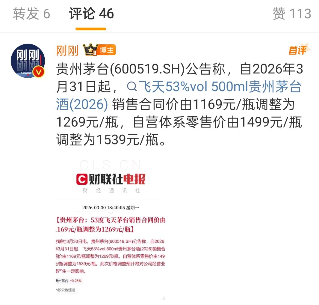 飞天茅台涨价从官方指导价1499涨价到1539,涨了40块,看上去不多,但是我本来也喝不起,喝的人不心疼,心疼的人也喝不上,这就是顶级奢侈品的底气,哈哈哈哈